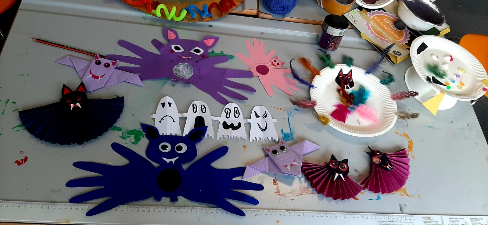 Am letzten Schultag vor den Ferien haben wir eine kleine Halloween-Party veranstaltet mit lustigen und gruseligen Kostümen und Buffet. Und die Schule wurde natürlich auch fleißig geschmückt 🎃