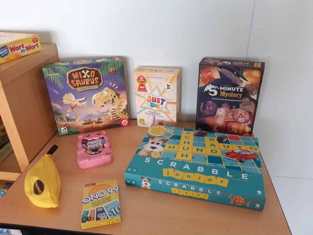 Playmobil Ritterburg und Ponyhof wurden noch am gleichen Tag aufgebaut. Mit dem Bau des Roboters wurde auch begonnen und einige der Brettspiele wurden schon bespielt.